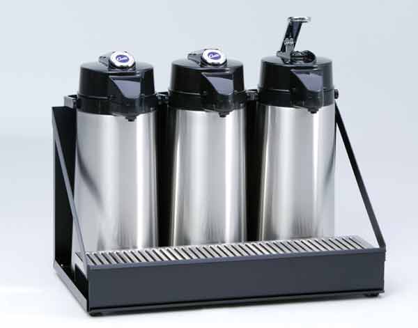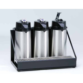 Add Curtis’ Airpot Racks to your airpot program and quickly create remote coffee service centers. Compact design with integral drip tray holder and 3" high merchandising channel. Available in capacities for any service application.