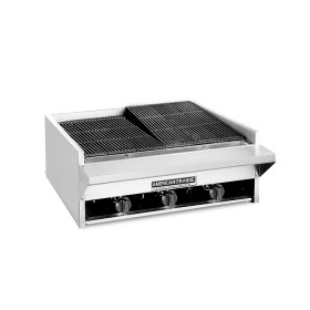 - Heavy duty reversible cast iron 5” x 21” top grates with grease runners to direct the run off to the removable grease trough.