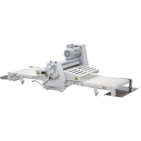- Synchronized 2-speed in feed prevents tearing of dough.