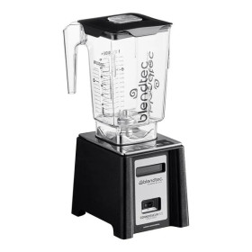 The Blendtec C825C11E-A1GA1D blender has a lightweight FourSide jar with a four-sided design and tapered profile that draw items toward the blade. The jar is made of tough, transparent Tritan for product visibility. There are markings up to 32 ounces on the side for measuring products. This unit can run as many as 150 cycles each day, and its blunt safety blade withstands heavy use.