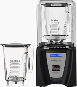 The Blendtec C825C11Q-B1GB1A blender has a lightweight FourSide jar with a four-sided design and tapered profile that draw items toward the blade. The jar is made of tough, transparent Tritan for product visibility. There are markings up to 32 ounces on the side for measuring products. This unit can run as many as 150 cycles each day, and its blunt safety blade withstands heavy use.