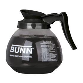 Bunn 42400.0101 Black 12-Cup Glass Decanter. Working as a testament to Bunn products ease of use is the drip proof and fast pouring lip on this decanter. Quick and easy pouring of up to 64 oz. of coffee alongside the decanter's superior production has assured exceptional freshness for your brew. Glass Construction. NSF and UL approved.