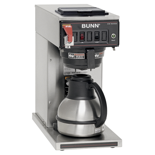 The Bunn CWTF15-TC automatic thermal carafe coffee brewer can brew up to 3.9 gallons of coffee per hour directly into thermal carafes. Lined with glass or stainless steel, thermal carafes can keep your coffee hot and fresh for hours at self service stations or servers areas without the use of a warmer!