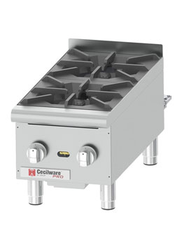 Cook, fry, and sear your most popular dishes with the Cecilware Pro, HPCP212 12" two burner gas hot plate! This hot plate features two burners with 44,000 BTUs of power to make quick work of your most popular entrees. The simple dial controls make it easy to individually adjust temperatures in a burner, and the heavy duty grates are removable for easy cleaning. The stainless steel exterior ensures a long product life, and thanks to its sturdy legs, you can be sure this unit will remain in place when you're using it.