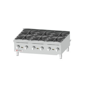 Cook, fry, and sear your most popular dishes with the Cecilware Pro, HPCP636 36" six burner gas hot plate! This hot plate features six burners with 132,000 BTUs of power to make quick work of your most popular entrees. The simple dial controls make it easy to individually adjust temperatures in a burner, and the heavy duty grates are removable for easy cleaning. The stainless steel exterior ensures a long product life, and thanks to its sturdy legs, you can be sure this unit will remain in place when you're using it.