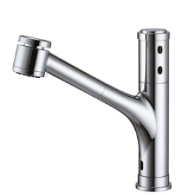 • Two-function pull-down spray head with touch-control allows users to switch from stream to spray and vice versa.