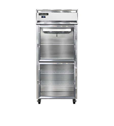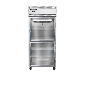 Extra-Extra-Wide Freezer, display, 36-1/4" wide one-section, self-contained refrigeration, aluminum exterior & interior, stainless steel front, standard depth, wide hinged glass half doors, electronic controller w/ digital display, electric condensate evaporator, 5" casters, 3/4 hp