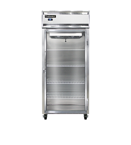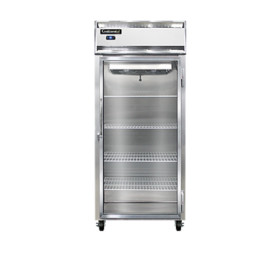 Extra-Extra-Wide Freezer, low temperature, 36-1/4" wide one-section, self-contained refrigeration, stainless steel exterior, aluminum interior, standard depth, wide hinged glass doors, minus 15° temperature, electric condensate evaporator, 5" casters, 1 hp