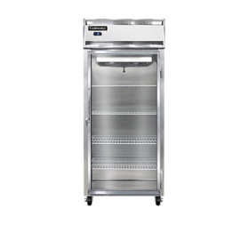 Extra-Extra-Wide Freezer, display, 36-1/4" wide one-section, self-contained refrigeration, stainless steel exterior, aluminum interior, standard depth, wide hinged glass door, electronic controller w/ digital display, electric condensate evaporator, 5" casters, 3/4 hp