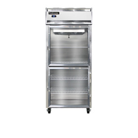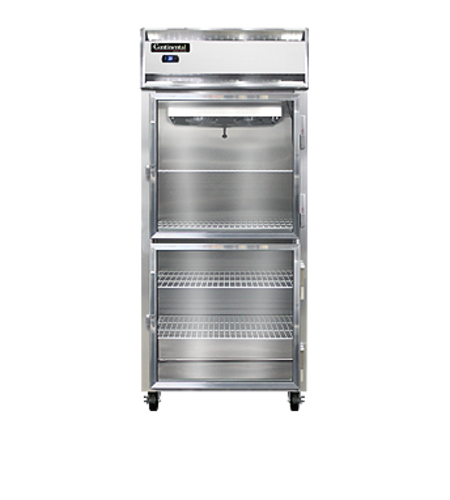 Designer Line Extra-Wide Refrigerator, reach-in, 36-1/4" wide one-section, self-contained refrigeration, aluminum exterior & interior, stainless steel front, shallow depth cabinet, wide half-height glass doors, exterior digital thermometer, 6" adjustable stainless steel legs, 1/3 hp