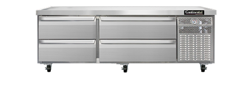 Refrigerator Griddle Stand, two-section, (4) drawers - two drawers accommodates (1) 12" x 20" x 6" & (1) 6" x 20" x 6", two drawers accommodates (2) 12" x 20" x 6", dial thermometer stainless steel top with drip guard marine edge, stainless steel exterior and interior, 4" casters, self-contained refrigeration, 1/4 hp, 10' cord