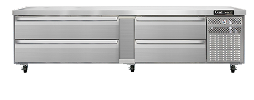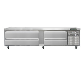 Refrigerator Griddle Stand, two-section, (4) drawers - two drawers accommodates (2) 12" x 20" x 6", two drawers accommodates (3) 12" x 20" x 6", dial thermometer stainless steel top with drip guard marine edge, stainless steel exterior and interior, 4" casters, self-contained refrigeration, 1/3 hp, 10' cord