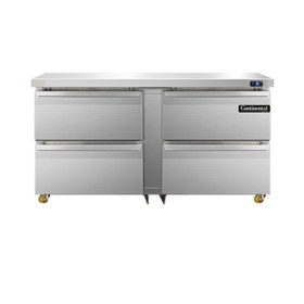 Designer Line Undercounter Freezer, 60" wide, two-section, (4) drawers, stainless steel exterior & interior, stainless steel top, 1 3/8" diameter plate casters, front breathing, electronic controller w/ digital display, rear mounted self-contained refrigeration, 1/2 hp