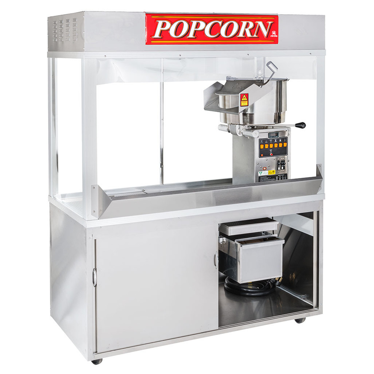 - Optional controls (not included) include salt/sweet switch to produce salted corn or sweet corn, One-Pop button that automates the popping cycle, and One-Pop with Counter that automates and records the number of popping cycles. Also available with semi-enclosed top, and optional neon signs.