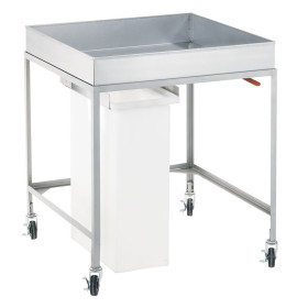 The Cooling Cart with Removable Slide Out Bin is a perfect add on that provides easy transport of popcorn. Moving popcorn from production plants using plastic bags is awkward, increases breakage and is unsanitary. After product is cooled in this cart, simply release the corn into the plastic bin underneath. The bin then can be wheeled or carried to the packaging area. The stainless-steel design with removable food grade plastic bin is durable and easy to clean.