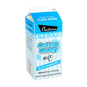 Cretors Flossugar is made from a special sugar - not too fine, not too coarse. The colors have been "vividized" so that you get a bright color, but color concentrations do not exceed the limits set down by Food & Drug Administration's GMP directives. It comes packed in sealed 3.25lb cartons making it easy to open the box and pour into the machine spinner head with no messy mixing or unsanitary sugar buckets. Sold as 6-3.25lb cartons per case.