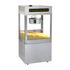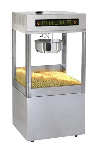 960 one ounce servings. The new Mach 5 popper is truly a versatile machine! Beautifully styled, and built to last for generations, this popper draws on Cretors long tradition of popping technology and joins it with exciting innovative features!