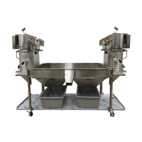 If high volume Kettle Korn production is what you need, simply install two pedestal kettles onto our Sifting Table. It's not just how much corn you pop, it's how well you pop it. That's the philosophy behind our high-volume Giant Poppers, which let you pop anywhere from a small amount to a mountain of popcorn. These Cretors poppers are designed as compatible components in your production system. Our Twin Plant Sifting Tables boast robust construction and streamline design that facilitates seamless workflow management. Whether in a busy kitchen or vibrant showroom, this table serves as the cornerstone of quality popcorn production!