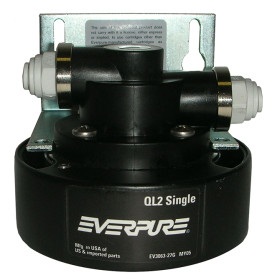 The Everpure QL2G4 Filter Cartridge Head with shut off and mounting bracket. 1/4” John Guest fittings.
