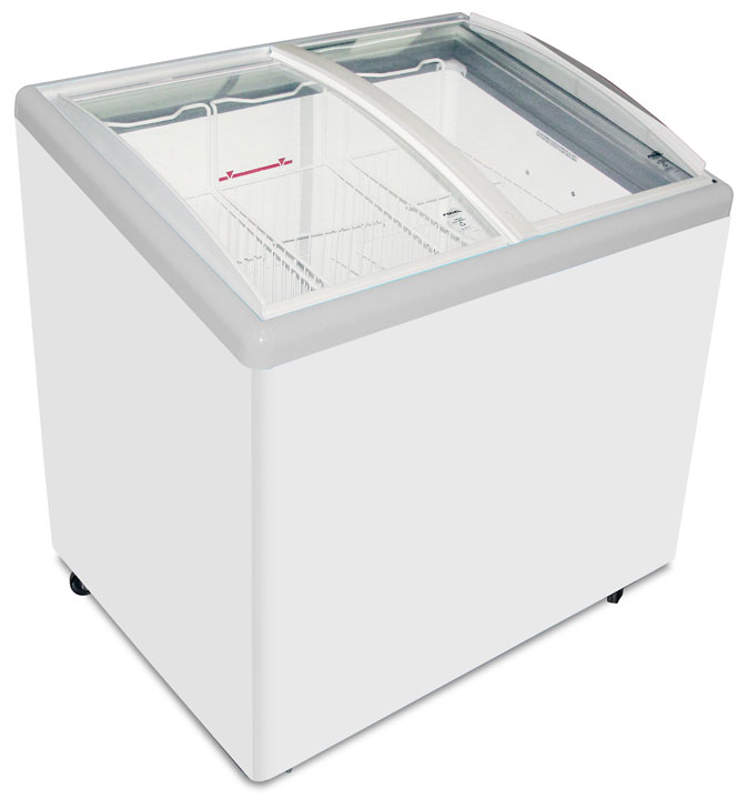 - Angled top with curved glass lid