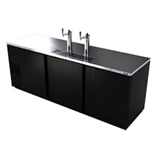 Draft Beer Cooler, 3 section, (5) keg capacity, black exterior finish, 18 ga. s/s top, galvanized interior, s/s floor with removable polymer protection, analog thermostat, (2) tower, (4) tap, (3) doors w/locks, fluorescent interior light, self-contained refrigeration, includes (1) 4 way gas valve, 1/3 hp, cETL, UL, NSF-7