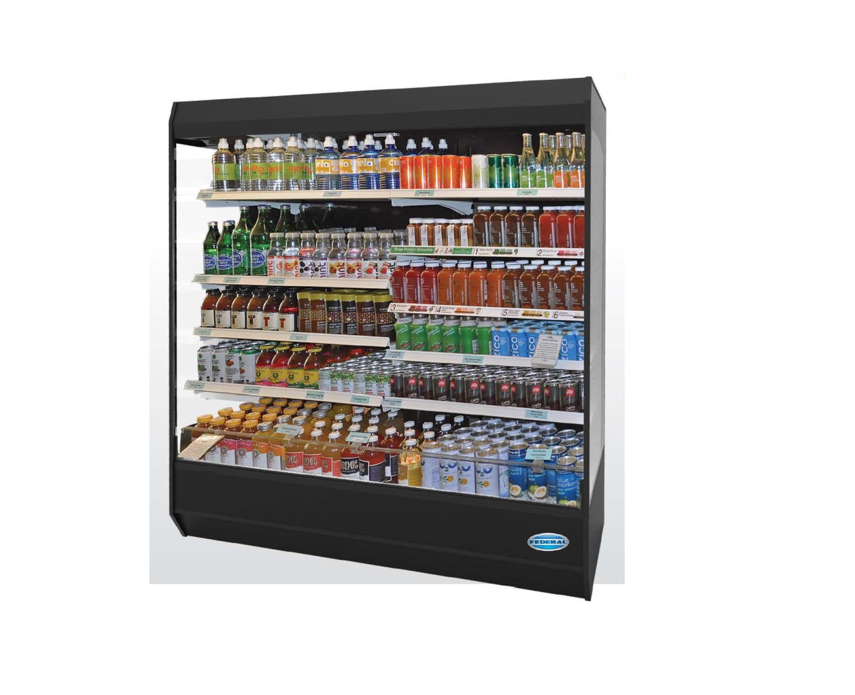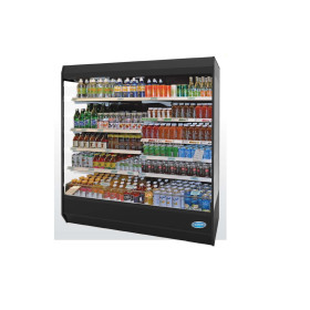 Remote unit, Adjustable white metal shelves with price tag molding. Shelves can be flat or slanted. White interior, black optional, Lighted ceiling and LED shelf lights. Choice of six standard laminates on exterior base, Black trim and top front canopy. Energy saving night curtain,Insulated with high-density urethane foam. Designed for continuous line-ups, Electronic temperature control, Thermometer, UL Safety and UL Sanitation Listed, DOE 2012 Compliant.