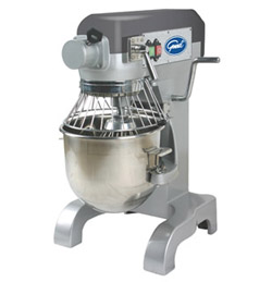 These all-purpose mixers use a planetary mixing action that consistently blends, mixes and aerates all ingredients with satisfactory results. The heat treated carbon steel gears deliver energy at three pre-selected fixed speeds. Each mixer comes standard with a stainless steel bowl, flat beater, spiral dough hook, and wire whip. The stainless steel wire front bowl guard opens easily for adding ingredients. The bowl guard magnetic lock prevents the mixer from running if guard is opened or the bowl is lowered. The switches are moisture resistant. All units come with an overload swicth which protects the motor.