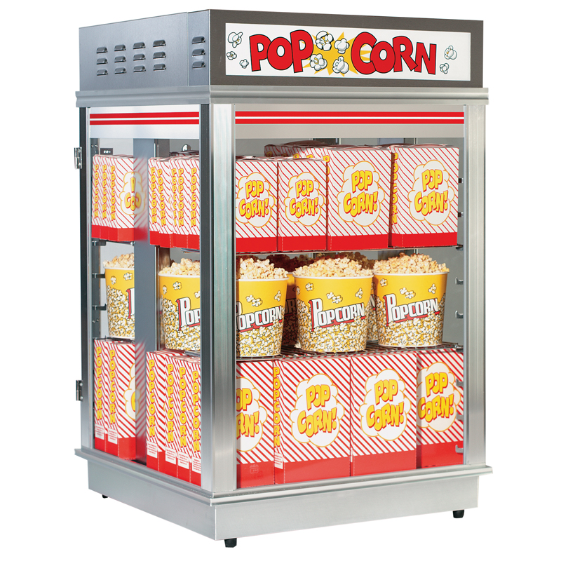 The Astro popcorn warmer is one of a several different warmer models created by Astro. Its compact 28"W by 28"D measurements means that you can fit this warmer on most bars and counter tops. This Astro warmer uses the same popcorn freshener system found on the popular Pop-O-Gold models. 2002T model includes swing out doors.