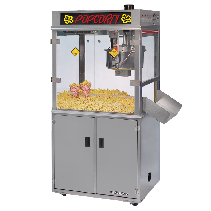Today, many theatres, arenas, auditoriums, and stadiums have already switched to Pop-O-Gold popcorn machines. This 32 Oz. Pop-O-Gold popcorn popper is just a few more dollars for 60% more capacity than a 20 oz. kettle popper. Get much more popcorn per use, and notice quicker profits with this great popcorn machine. Specify the #2257 Bag-in-a-Box pump. It is shipped as a complete unit in one crate.