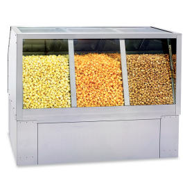 Make an impact and sell more with three separate compartments/doors in this warmer. The forced hot air keeps corn fresh and crisp. It's perfect for shops offering multiple corn flavors, and is also good for frosted nuts or other items you would like to visually merchandise and serve warm. Shown on GM-2446BSD base, sold separately.