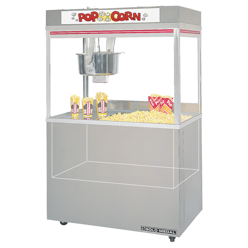 Gold Medal offers the world's first approved intergrated ductless hood popper. The world's first "clean air" high capacity popper. Steam smoke and oil vapors created in the popping process are trapped and filtered out! Only that beautiful popcorn aroma escapes into the atmosphere. What does ED stand for in this popcorn machine? E is for the electronic Big Eye. D is for deep well. The built-in Ansul System is "armed" after the machine is installed on location.