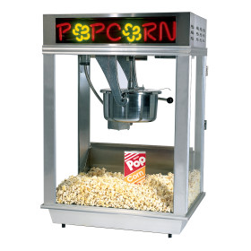 The classic Pop-A-Lot tradition is carried on in the flagship Pop-A-Lot popcorn popper. Making popcorn will be a tasteful breeze. This machine features a stainless and welded aluminum extrusion cabinet. Features a neon sign on top, a proven sales getter. A top of the line 8 ounce popcorn popper features EZ Kleen kettle with heavy duty drive motor and the largest 8oz cabinet size available. Also features welded frame and two strip heaters located beneath the corn deck. The exhaust filtration system captures oil vapor and circulates that fresh popcorn aroma that lets people know you are popping fresh corn. Gold Medal Popcorn Machines feature an E-Z Kleen Kettle. All cooking surfaces, kettle outer shells, kettle lids and cross bars are stainless steel which is very durable, cannot rust and is extremely easy to clean. Unique kettle design allows for even heat distribution and eliminates hot spots.