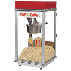 The Original Bronco Pop Popcorn Machine is an attractive, attention-getting popper that lasts a lifetime. This popcorn machine is heavy-duty in every respect. It features a heavy duty drive motor, all welded frame, tempered glass and heated corn deck. Gold Medal Popcorn Machines feature an E-Z Kleen Kettle. All cooking surfaces, kettle outer shells, kettle lids and cross bars are stainless steel which is very durable, cannot rust and is extremely easy to clean. Unique kettle design allows for even heat distribution and eliminates hot spots. The red dome and anodized aluminum cabinet produces popcorn profits for years and years.