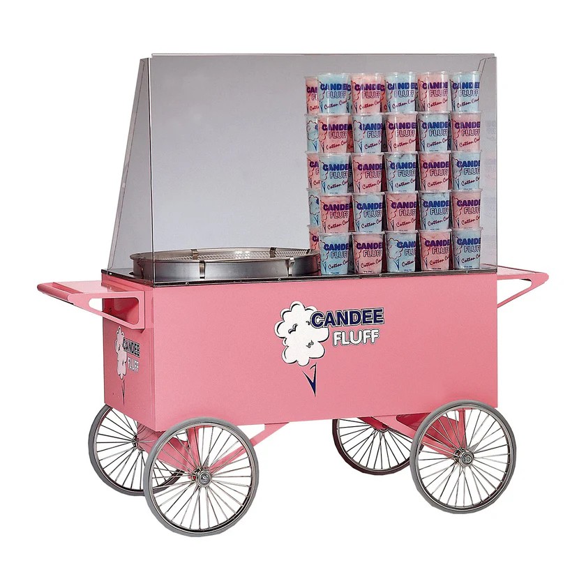 The perfect movable merchandiser to maximize your cotton candy sales. The Candee Fluff® Lobby Master® #3118 is compatible with any Gold Medal floss machine. This eye-catching pink wagon carries the signature Candee Fluff logo and provides ample storage and selling room. Complete with a Lexan® sneeze guard. Also available, #3118SS Stainless Steel Candee Fluff Lobby Master. Make sure to add this cotton candy cart to your lineup at stadiums, amusement parks and more! All items sold separately.