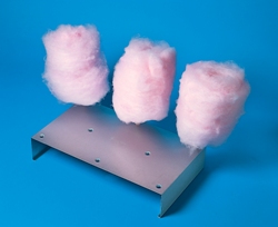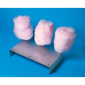 Stamped aluminum cotton candy counter tray holds six cotton candy cones and has tapered holes to hold servings upright. A great inexpensive accessory which makes serving cotton candy a breeze. In a high production cotton candy operation, you will need this tray on your counter to set your finished cotton candy cones in while the customer pays. Dimensions " x " x 1".