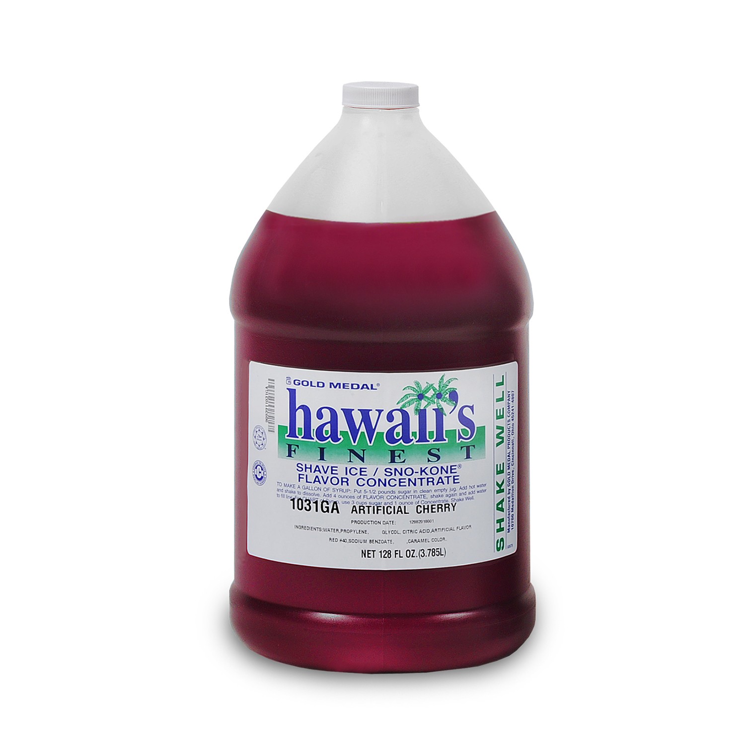 The Hawaii's Finest Shave Ice Flavor Concentrates are available in 128 oz. (gallon) bottles. One bottle when mixed with sugar will make 32 gallons of ready to use flavored syrup. Save over $2.00 a gallon with the Gold Medal professional quality concentrates for Shave Ice. Gold Medal has been the leading manufacturer of flavor concentrates since the early 30s and today this is the finest line of concentrated flavors available. To make 1 gallon, simply use 4 oz. of the concentrate, plus 5 lbs, of sugar to make a better syrup than you can buy anywhere!