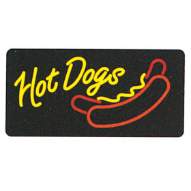Lighted Sign, "Hot Dogs", 24"W x 13"H, operates on 110 volts, hanging chain included. Fluorescent backlit illumination.