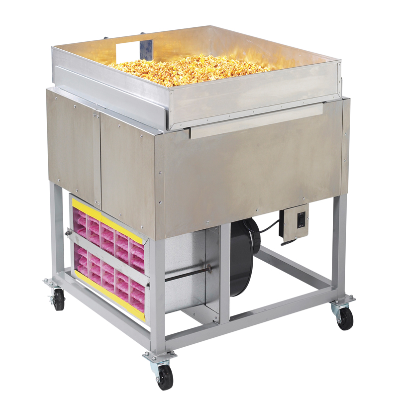 30" x 40" air cooled pan for 5 or 10 gallon mixers integrated into a rolling base. Features a high efficiency, long life air filter. Cools product in just minutes. Operates on 15 amp plug. Cooling pan included.