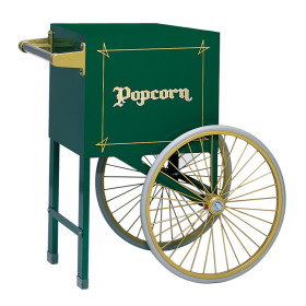 This popcorn cart will make your popcorn machine easier to use, raising it to just the right operating height. It also looks great, completing the classic popcorn machine look while the handle and spoke wheels make it easy to move and transport the cart. This popcorn cart is built to the same rugged standards as all of our carts and wagons, made of durable stainless steel. This cart is also available without gold screen print and in a wide variety of other colors.
