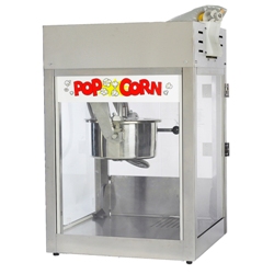 This popper comes with an onboard automatic oil pump which dispenses directly into the kettle from the oil bag. The oil amount can be adjusted in just seconds. Recommended oil is specialty formulated by Gold Medal for the Profit Maxx and offered in 1-gallon bags. Has the same compact size as the Pop Maxx and runs on a 15-amp plug.