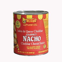 Nacho Cheese Sauce, ready to use, packaged (6) #10 cans per case (106 oz. per can). Just open the can, put into your Gold Medal Cheese Warmer and serve – ideal for most types of locations – nothing to mix – the quality is consistent! Ready-To-Use, Just open the can, and warm it in your Gold Medal Cheese Warmer. This is our most popular & user friendly Cheese Sauce. No MSG! Six, #10 tins.