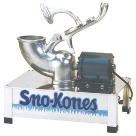 If you do not need the formal looking display of the Sno-Konette, the Battery Operated Shavette Little Shaver will do a fine job for shaving Sno-Kones, shave ice, or frozen cocktail ice. Operates on a heavy-duty RV battery battery all day long. The Shavette has the capacity to shave up to 300 lbs. of ice per hour. Comes complete with an ice pan and scoop for catching and serving your product.