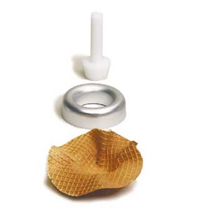 The Gold Medal 8216 small waffle dish forming kit enables you to make perfect waffle dishes every time! Includes a hard plastic pestle, and aluminum mold. It has a 3" inner diameter.