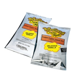 The name says it all. This delicious, low-fat yogurt has a silky smooth texture that melts in your mouth and pairs perfectly with fruit or candy toppings. It's simple and inexpensive to use, and there aren't any refrigeration or special storage requirements for this foil packed powder. (However, you must refrigerate once it's mixed with water.) This snack item only has 75 calories per 3.5 oz. serving. It will quickly become your customers' new guilty pleasure without the guilt! This product is packaged: 6 - 2.75 lbs. bags per case. Also try it as a base for sundaes, smoothies, or milkshakes.