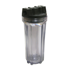 The Holiday House HOC1034 Clear 10" Filter Housings are manufactured from the highest quality, NSF listed, FDA grade reinforced polypropylene and use a Double O-Ring Seal. The first O-ring serves as a wiper and the second as a secure seal. In most cases, both O-rings seal and a double failure path is essentially impossible. Easy wrench on - easy wrench off with side sealing O-rings. They are sealed with a top seated O-ring and square thread closure. All caps come with four mounting bosses for rigid bracket mounting. Double O-ring seals as used in pharmaceutical-grade filters. The first O-ring serves as a wiper and the second as a secure seal.