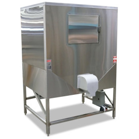 Safely store up to 1078 lbs of ice with this HCD-1000B 48" ice storage bin & bagger! It boasts foamed-in-place polyurethane insulation in all of the bin walls and the bottom of the unit to provide you with maximum ice preservation. The HCD-1000B features a durable cabinet with a seamless, easy to clean, polyethylene bin liner. This model comes Standard with 22"H Square Tube Legs and a Front ice shovel door. 115v/60Hz/1 phase power supply . The unit is ISO 9001:14001, ETL Sanitation Listed and includes a Two Years: Parts & Labor warranty on entire machine through Kloppenberg.