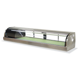 The HNC-180BA-L-SLH Display Case with left side condenser and LED lights is the perfect refrigerated countertop solution for sushi. With a net capacity of 2.54 cubic feet this self-contained refrigeration unit can display multiple food items.