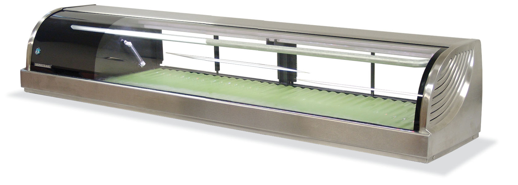 Full length front glass curves down, for an attractive display of items that is easy to clean. The HNC-180BA-L-SLH includes food plates – 5 pieces, with radius groove to fit sushi and other foods. It features a large diameter upper evaporator with tin plating, and a larger front to back interior, 11″ depth. The unit is NSF and includes a two years parts warranty on compressor: air-cooled condenser / one year parts & labor warranty on entire machine.