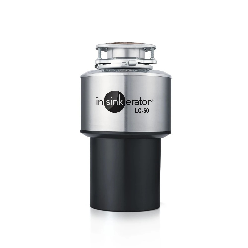 The InSinkErator LC50 disposer uses a standard wall switch for operation. It fits in a 3.5" to 4" opening. The cutting element in the stainless steel grind chamber is constructed of strong cast nickel chrome, and the motor reverses to lengthen the unit's life.