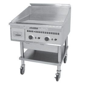 - Special Order Options - 4" legs, stand, stand with shelf and casters, cutting board (stainless or richlite), plate shelf, thermostat knob guard, belly bar, streaked surface, custom griddle styles and configurations, and security package.